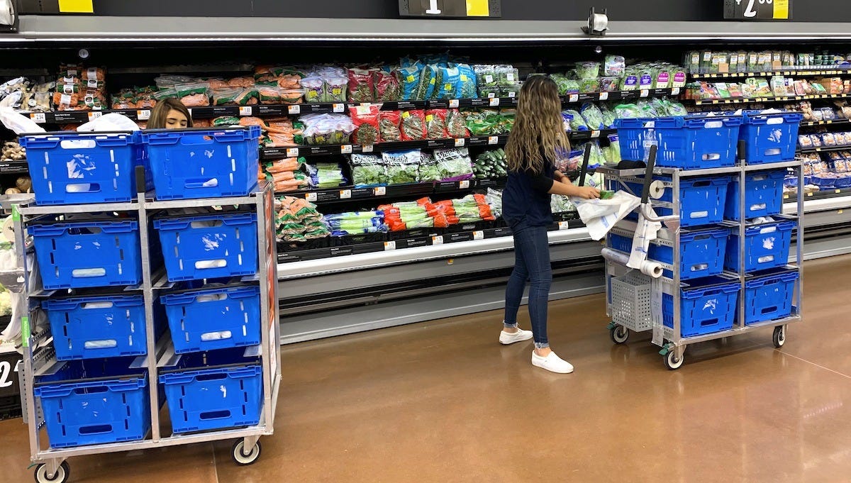 Walmart’s approach has been to leverage its existing assets, where its huge store footprint doubles as a network of local fulfillment centers. Walmart invested in training their store associates to pick online orders from aisles, built intuitive apps for pickers, and implemented curbside pickup infrastructure and delivery services (first through partners, but increasingly through Walmart’s own Spark driver network). By using stores, Walmart avoids building all-new warehouses for most orders and can fulfill online demand from nearby inventory that’s also serving walk-in customers. This “stores-as-hubs” model has been quite successful in terms of adoption; Walmart quickly became the U.S. market leader in grocery pickup/delivery by volume.