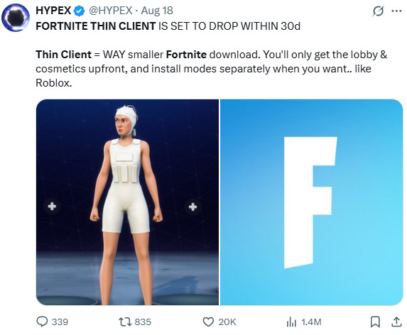 There’s also a robust effort underway to reduce technical requirements and size. Epic hinted on a thin client last year, but there’s a specific roadmap now on mobile to reduce download size and speed to launch.