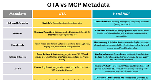 It’s worth digging into how the data is provided via OTAs today versus what a hotel could provide via it’s own MCP enabled feed. While the OTAs have extensive databases, the nature of their business forces standardization and limitations on information to what’s broadly useful. A custom MCP feed lets a hotel go much deeper and highlight what makes it unique.