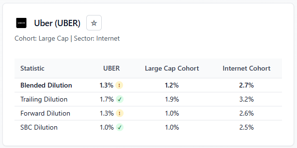The cohort and sector relativization is equally important. Comparing Confluent to Apple on raw dilution doesn’t tell you much because they’re at different stages of maturity, different capital intensity profiles, different employee cost structures. The leaderboard ranks companies against their peer set so the context is relevant.
