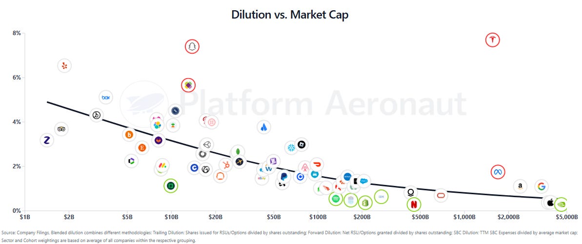One thing worth calling out that’s impacting some of the sector and cohort level metrics is Tesla’s huge pay package to Elon. It’s single handedly boosted the mega cap and big tech metrics up based on it pushing TSLA 0.00%↑ dilution to almost 8%