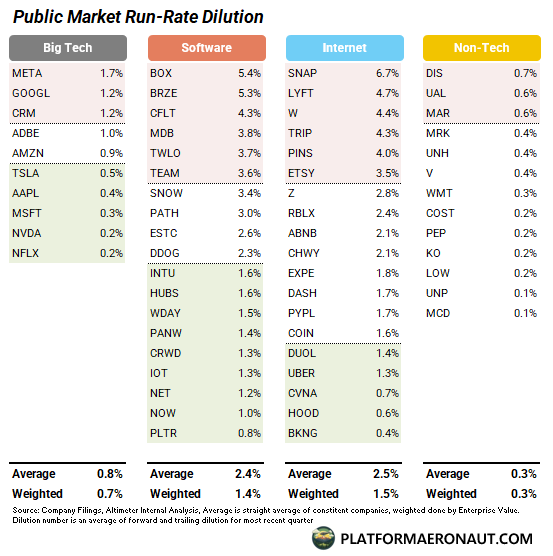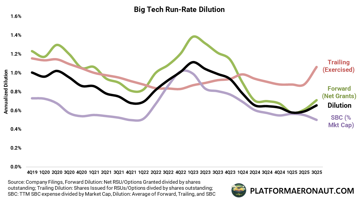 Looking at Big Tech dilution specifically, we have three main components driving how I calculate dilution: